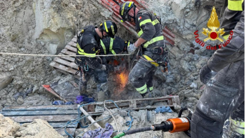 Macerata: Escavatore sepolto dai detriti a Corridonia, all'interno c'era un operaio: corsa contro il tempo per cercare di salvarlo
