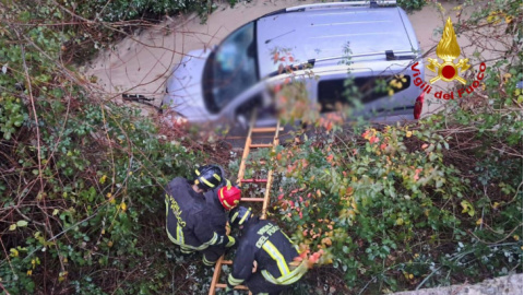Fabriano: Auto finisce in un fosso tra Cancelli e Serradica: conducente salvato dai Vigili del Fuoco