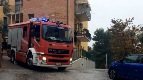 Intervento dei soccorritori della Croce Gialla nel primo pomeriggio di martedì 25 novembre in via Cingoli ad Ancona per un incendio che si è sviluppato all'esterno di un appartamento.