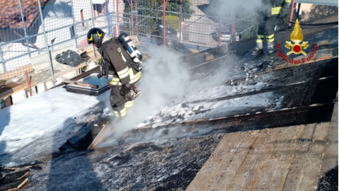 Fabriano: Tetto in fiamme a Fabriano