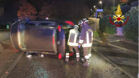 Senigallia: Incidente allâalba, auto si cappotta in via degli Oleandri